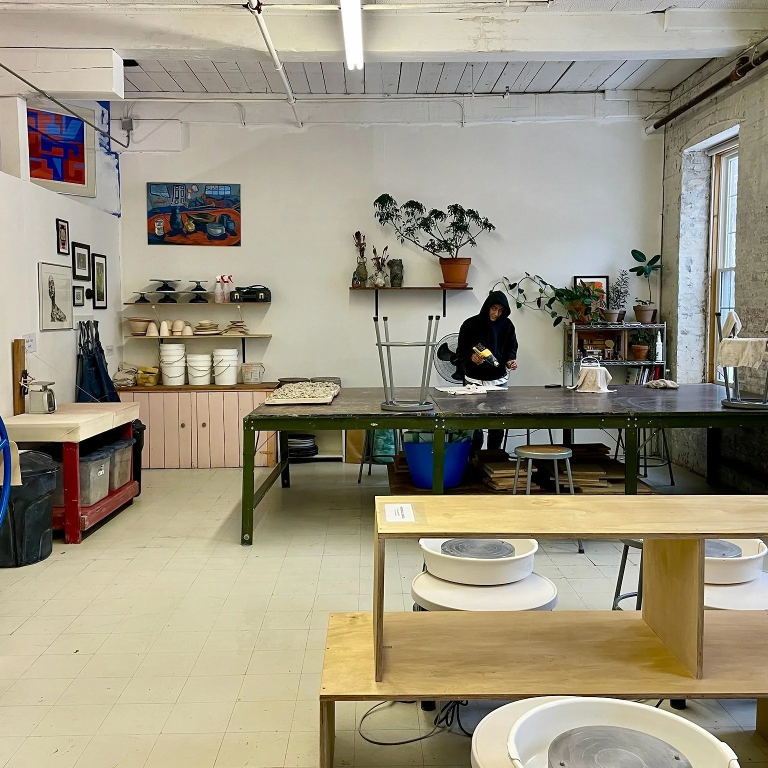 we are a small clay studio serving the local community; we have 8 wheels, two large hand-building table, slab roller, 3 electric kilns, extruder & all other basic ceramic studio equipment. we offer classes, workshops & monthly studio memberships. if you are interested please inquire via email.